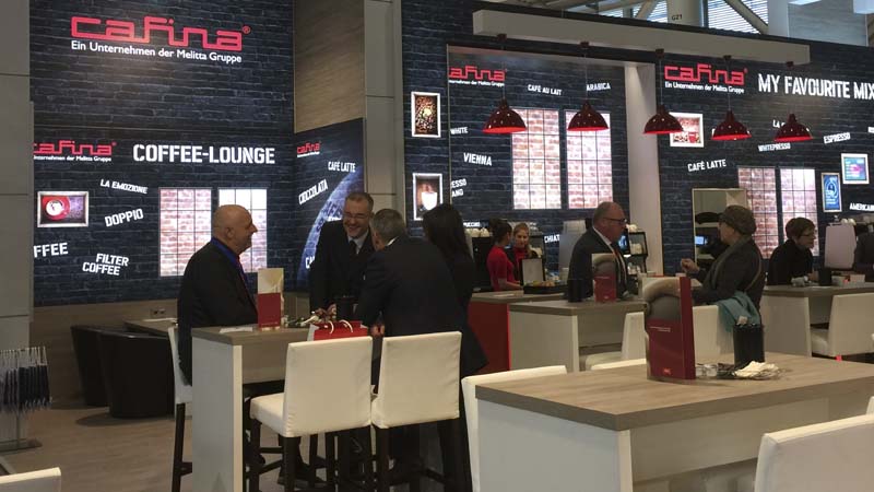 Der Messeauftritt der Cafina AG bedeutet Anspruch. Ein eigenständiger Firmenauftritt, der doch die Nähe zu Melitta zeigt, gepaart mit Professionalität im Gastronomiegeschäft war die Herausforderung.